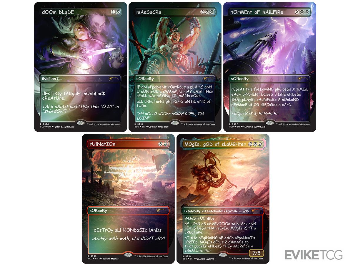 - Contents include (Rainbow Foil Borderless): Doom Blade, Massacre, Torment of Hailfire, Ruination, Mogis God of Slaughter