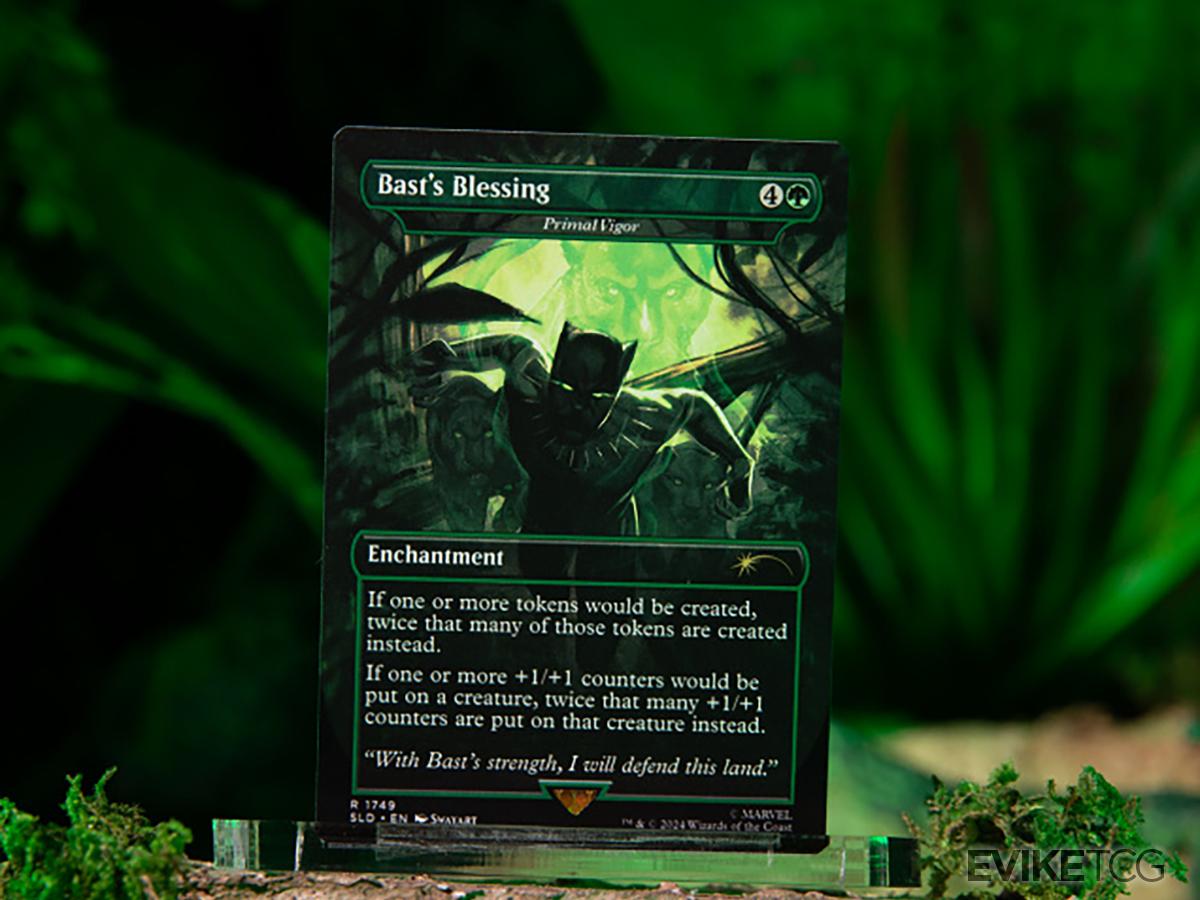 - Contents include (Non Foil Borderless): Black Panther Wakandan King, Secure the Wastes, Primal Vigor as "Bast's Blessing", Heroic Intervention, Karn's Bastion as "Wakandan Skyscraper", Warrior token
