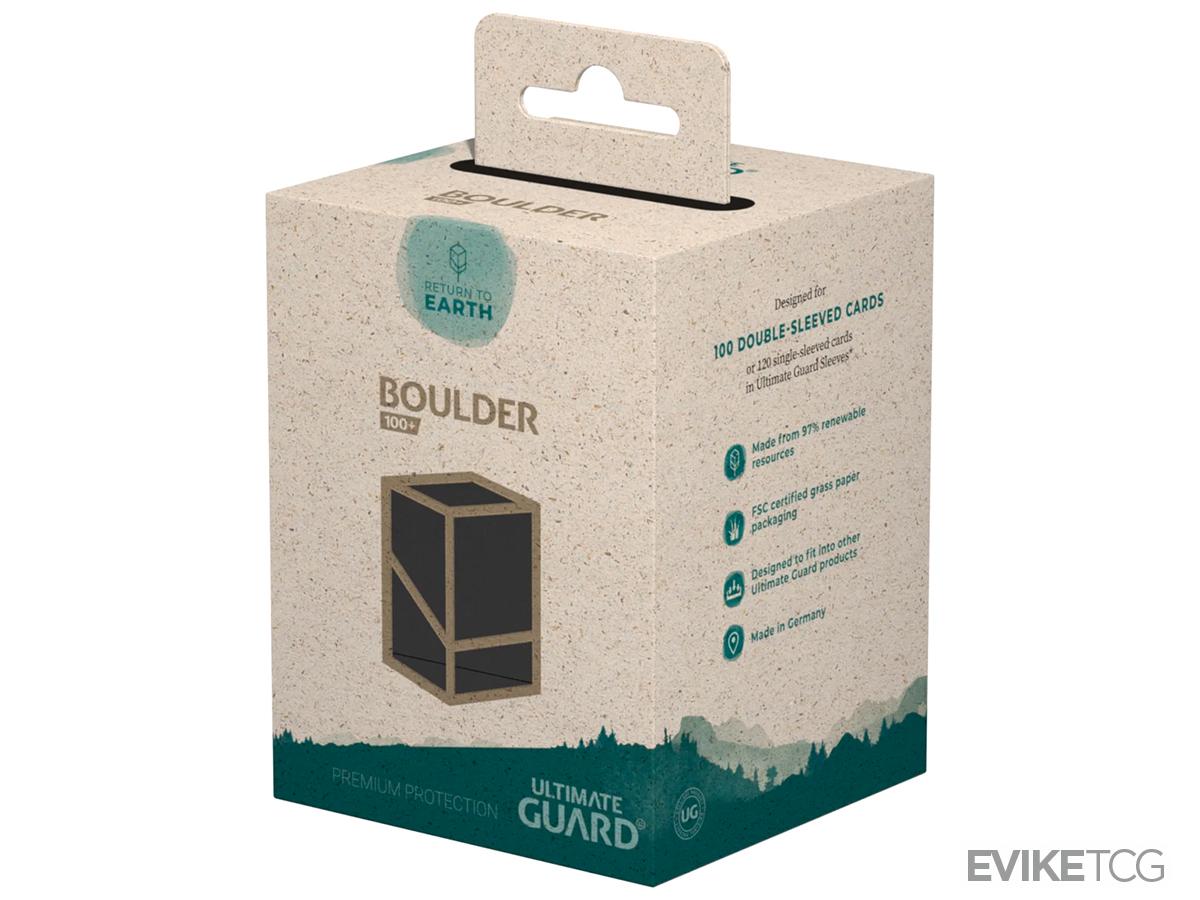 The Boulder 100+ deck case is recyclable and holds up to 100 double-sleeved or 120 single-sleeved cards when using Ultimate Guard Sleeves.